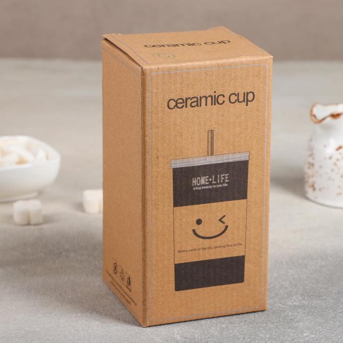 Стакан керамический «Хорошее настроение», 420 мл, с крышкой и трубочкой, МИКС — Характеристики
