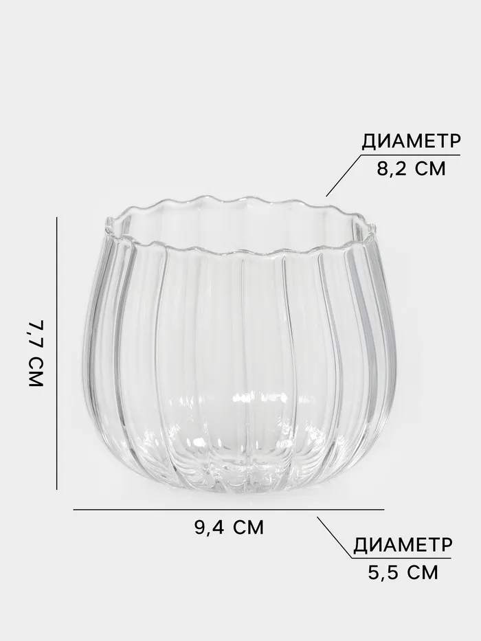 Стильный стеклянный стакан станет идеальным дополнением для вашего стола. Прозрачный дизайн с рельефной текстурой подчеркивает красоту напитков и создает атмосферу уюта в любом интерьере.