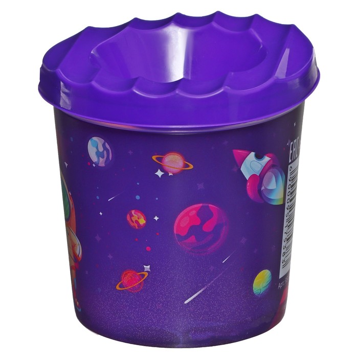 Специальная форма крышки стакана исключает возможность вытекания воды. Линия на прозрачном корпусе указывает на максимально возможный уровень наполнения. Выполнен из прочного пластика. Имеются специальные углубления на крышке для размещения кисточек. Полный объем - 210 мл. Объем до уровня - 75 мл. Оригинальный дизайн сделает процесс рисования еще более увлекательным