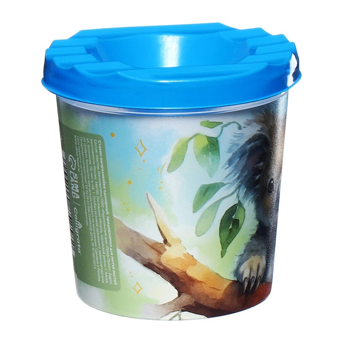 Специальная форма крышки стакана исключает возможность вытекания воды. Линия на прозрачном корпусе указывает на максимально возможный уровень наполнения. Выполнен из прочного пластика. Имеются специальные углубления на крышке для размещения кисточек. Полный объем - 210 мл. Объем до уровня - 75 мл. Оригинальный дизайн сделает процесс рисования еще более увлекательным