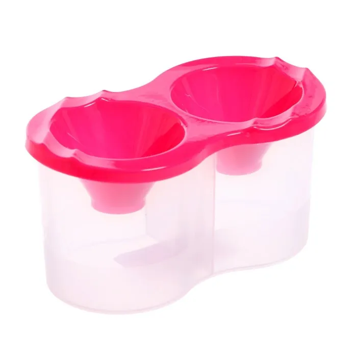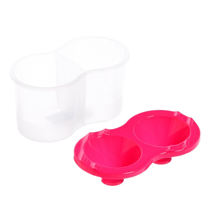 Имеет 2 вместительных резервуара для воды. Специальная форма крышки стакана исключает возможность вытекания воды. Линия на прозрачном корпусе указывает на максимально возможный уровень наполнения. Выполнен из прочного пластика. Имеются специальные углубления на крышке для размещения кисточек. Полный объем одного отделения - 150 мл. Объем до уровня - 50 мл.