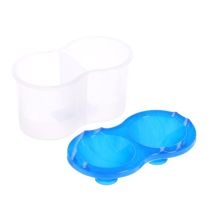 Имеет 2 вместительных резервуара для воды. Специальная форма крышки стакана исключает возможность вытекания воды. Линия на прозрачном корпусе указывает на максимально возможный уровень наполнения. Выполнен из прочного пластика. Имеются специальные углубления на крышке для размещения кисточек. Полный объем одного отделения - 150 мл. Объем до уровня - 50 мл.