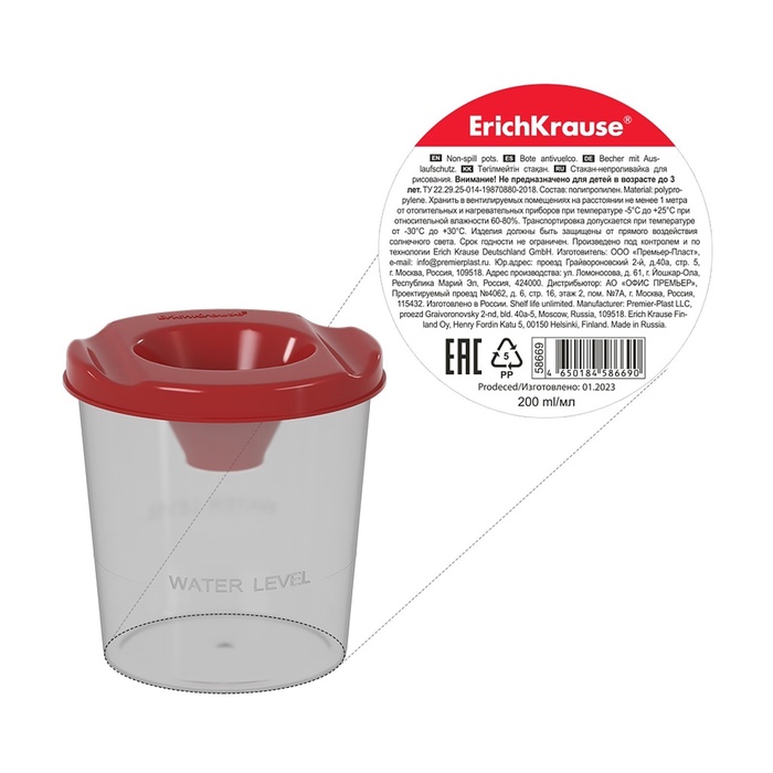 Стакан - непроливайка для рисования ErichKrause Classic, 200 мл, красный — Характеристики