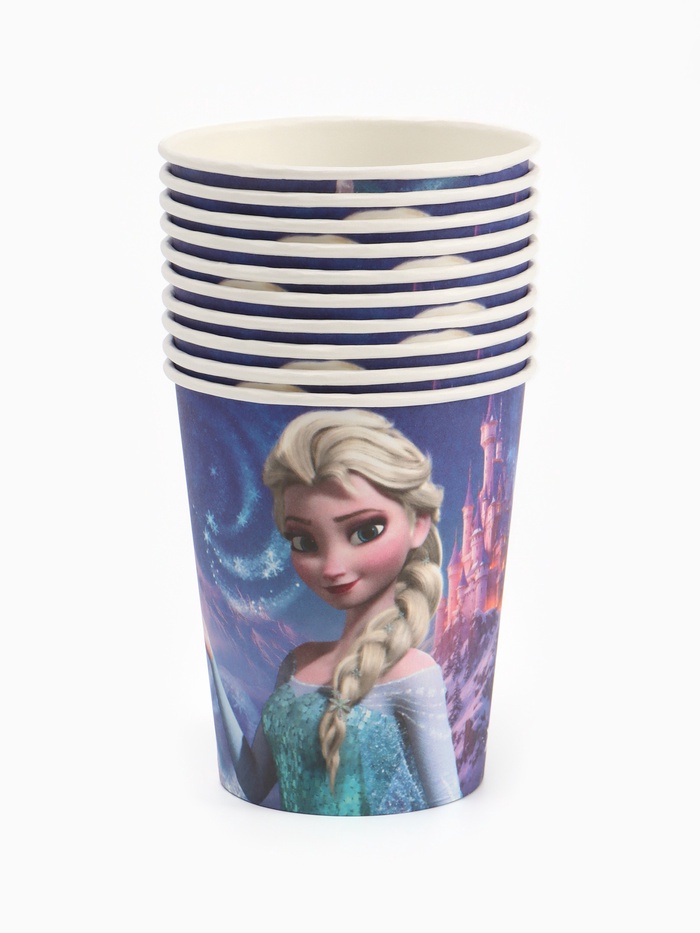 Одноразовые стаканы 250 мл, набор 10 шт., «Холодное сердце» — яркий и атмосферный элемент оформления детского праздника в стиле любимого мультфильма! На стаканах изображена Эльза, замок, Северное сияние, снежинки и другие тематические элементы. Подходят для прохладных и тёплых напитков, удобны в использовании и легко утилизируются.