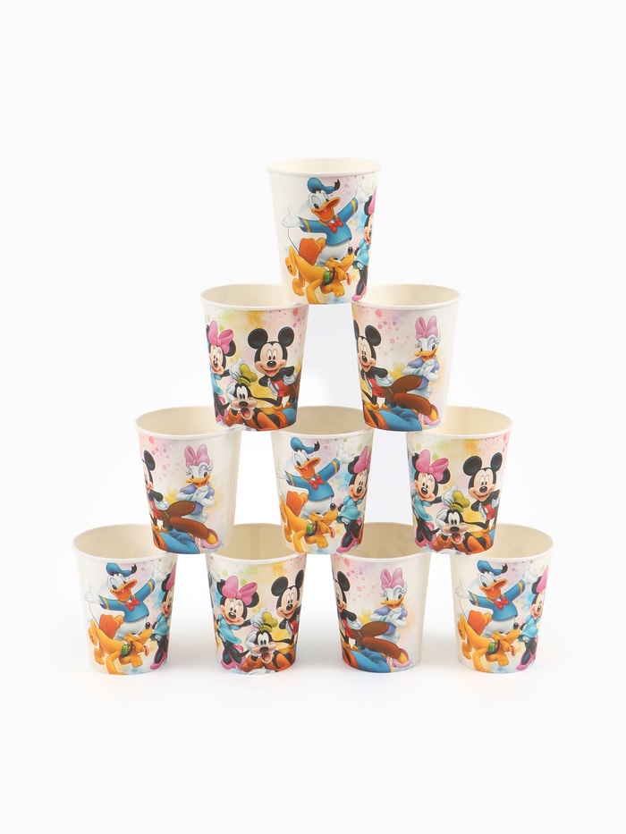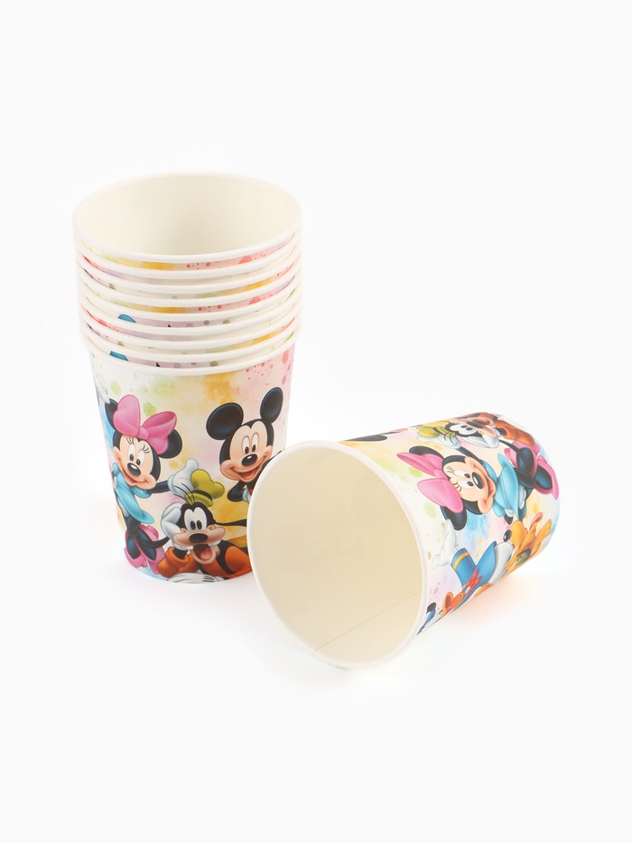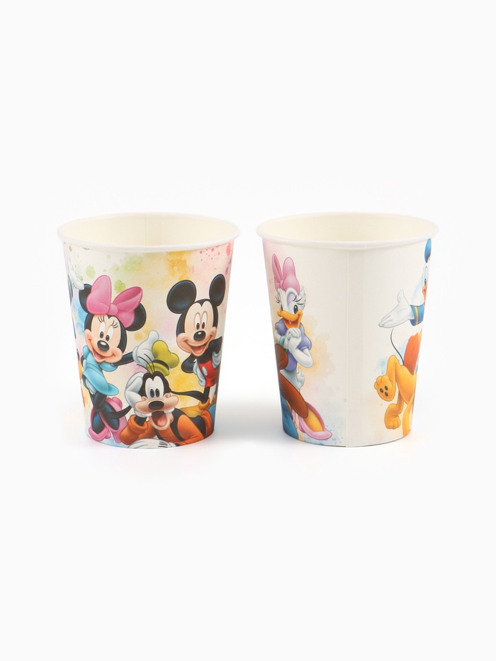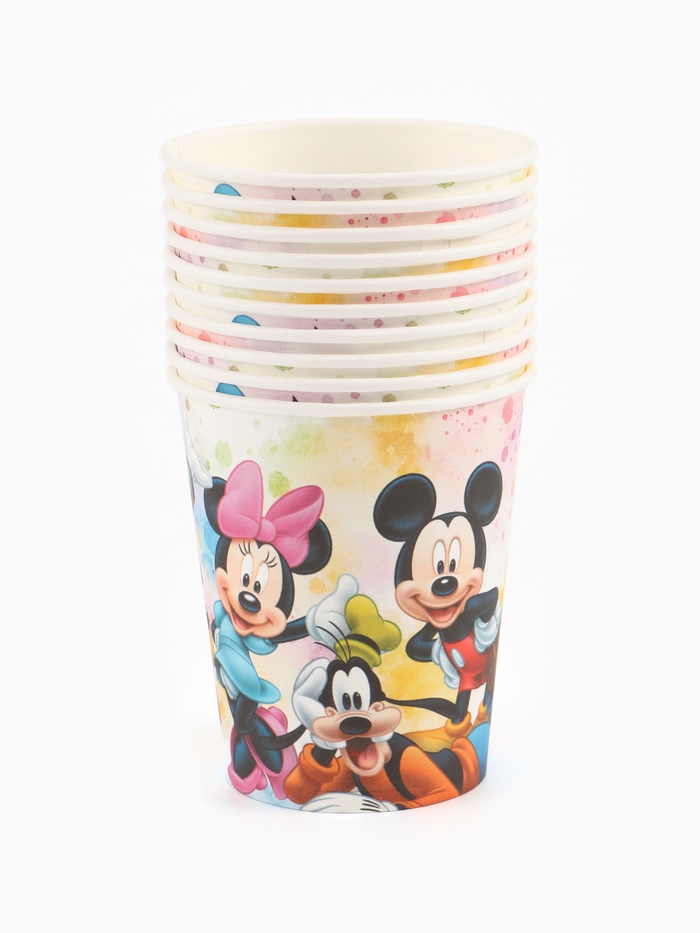 Одноразовые стаканы 250 мл, набор 10 шт., «Микки Маус и друзья» — весёлый и ностальгический элемент праздника в стиле самой доброй классики Disney! Выполнены из картона с полноцветной печатью: на стаканах — Микки, Минни, Гуфи и другие в праздничных позах. Яркая, жизнерадостная палитра — красный, жёлтый, синий, чёрный — в узнаваемом ретро-современном стиле Disney. Подходят для прохладных и тёплых напитков, удобны в использовании и легко утилизируются. Идеально подойдут как для детского дня рождения, так и для тематической вечеринки — ведь с Микки и друзьями всегда весело, тепло и по-семейному уютно!