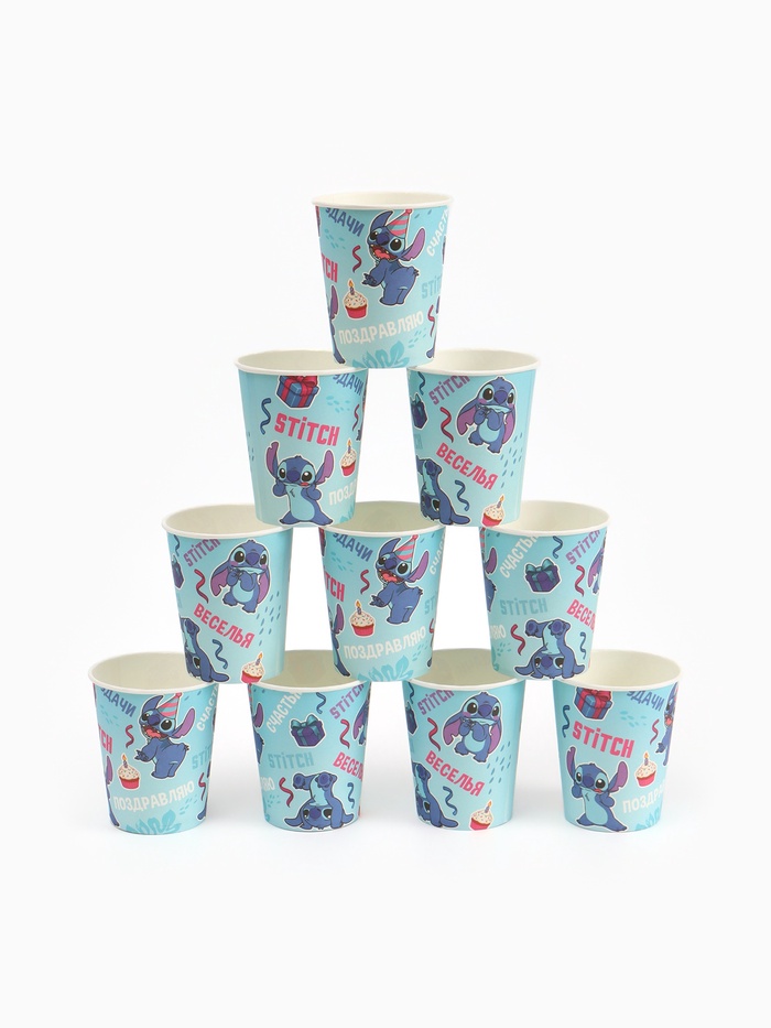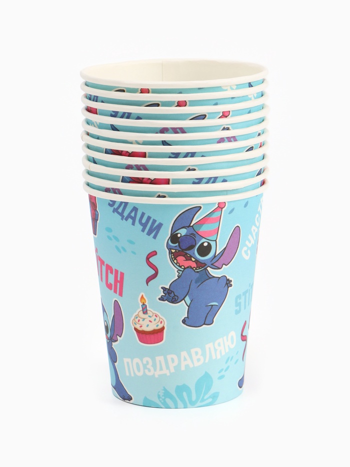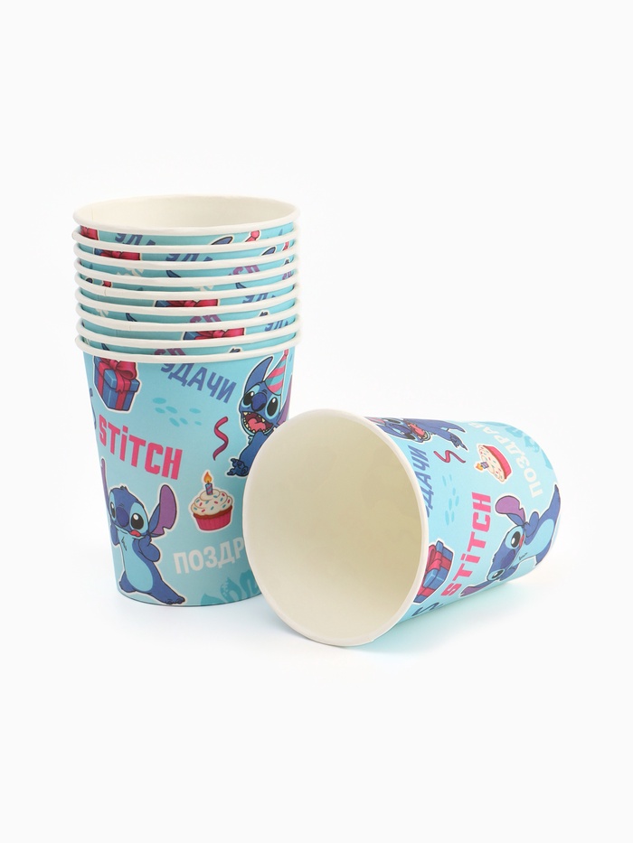 Одноразовые стаканы 250 мл, набор 10 шт., «Стич» — яркий и атмосферный элемент оформления детского праздника в стиле любимого диснеевского персонажа! Выполнены из картона с печатью на стаканах, изображён озорной Стич в различных комичных позах, в окружении подарков, кексиков и забавных надписей. Подходят для прохладных и тёплых напитков, удобны в использовании и легко утилизируются.