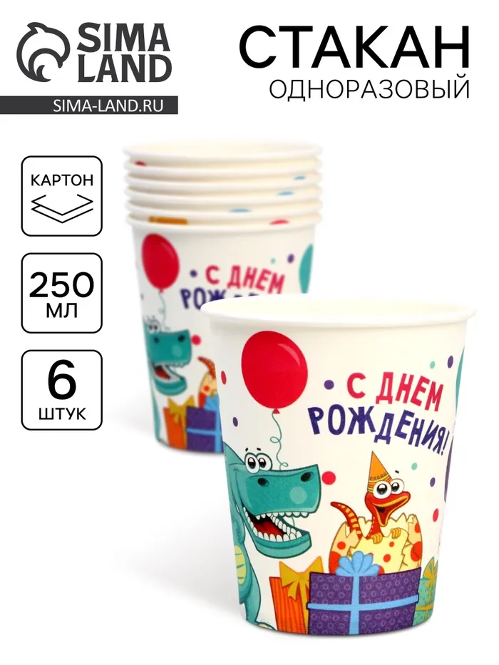 Стакан одноразовый бумажный «Динозаврики», 250 мл, набор 6 шт. — Характеристики