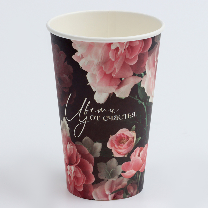 Стакан одноразовый бумажный для кофе "Цвети от счастья", 400 мл
