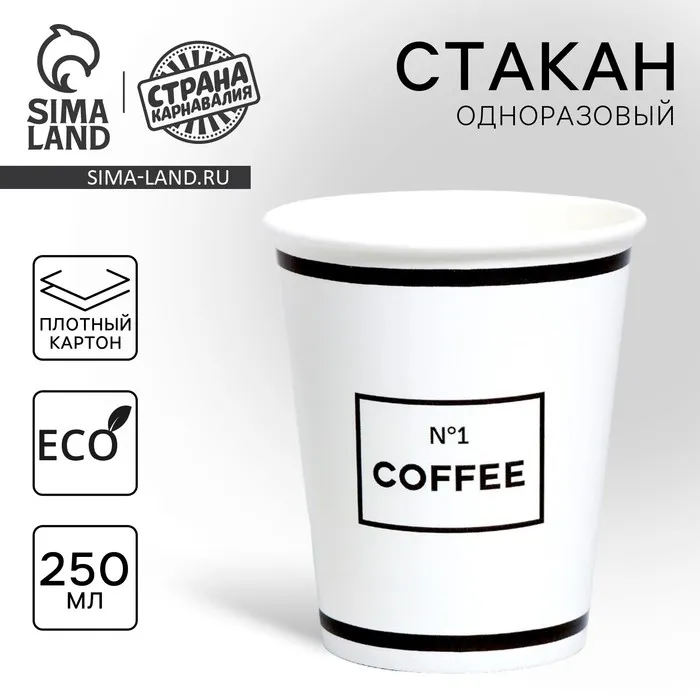 Стакан одноразовый бумажный для кофе"номер один", 250 мл — Характеристики