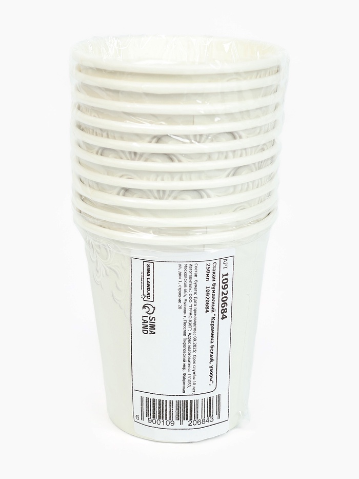 Стакан одноразовый бумажный «Керамика, узоры», 250 мл — Характеристики