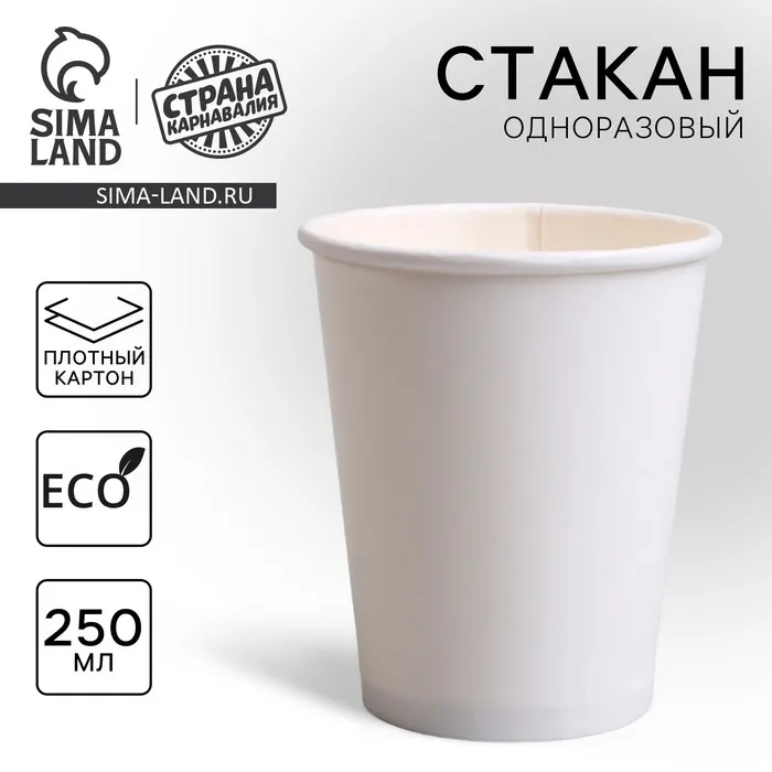 Стакан одноразовый бумажный однотонный, цвет белый, 250 мл, набор 50 штук — Характеристики