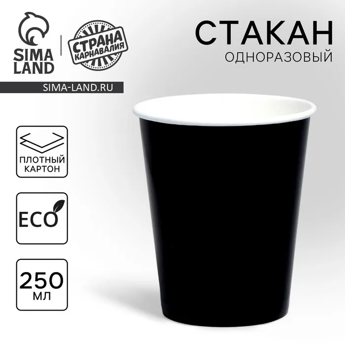 Стакан одноразовый бумажный однотонный, цвет черный, 250 мл — Характеристики