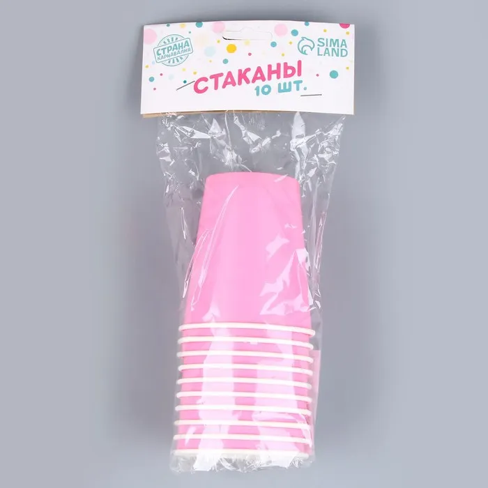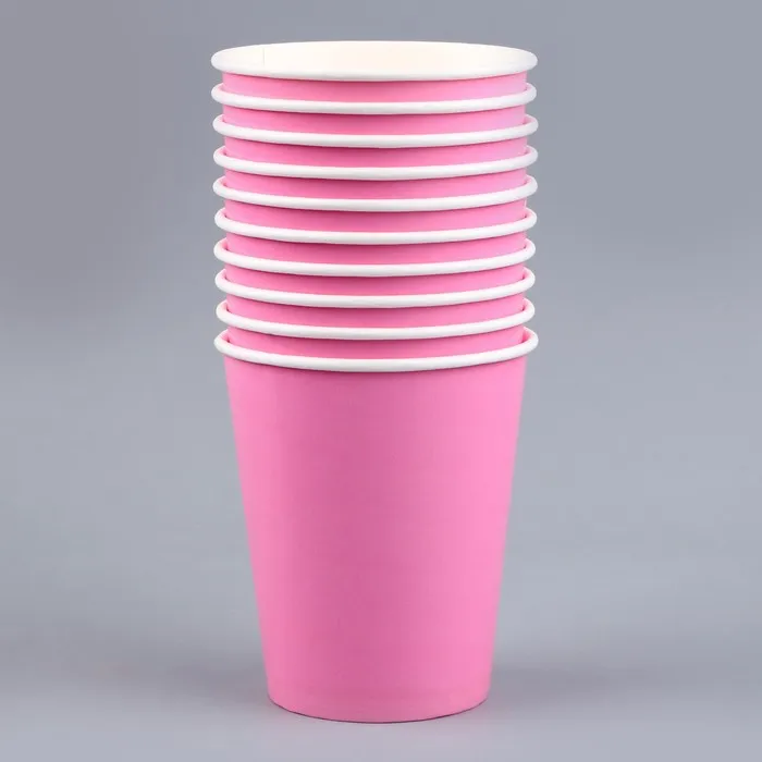 Стакан одноразовый бумажный однотонный, цвет розовый, объем 250 мл, набор 10 штук