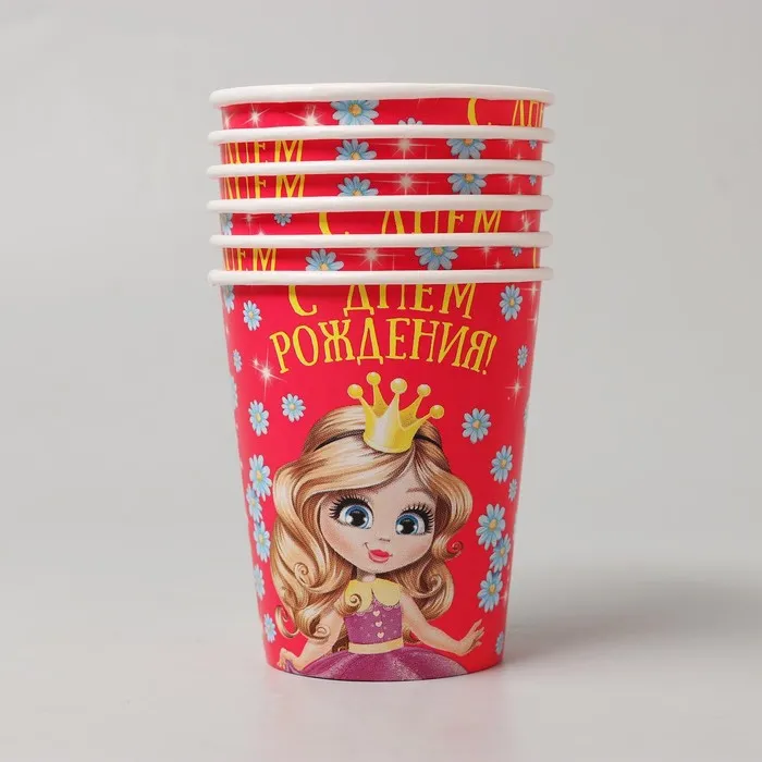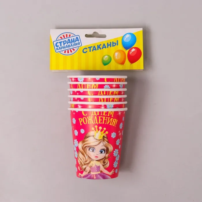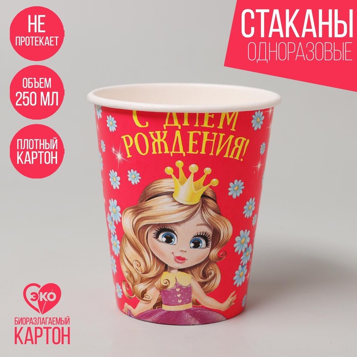 Стакан одноразовый бумажный "С Днем рождения" принцесса, 250 мл набор 6 шт — Характеристики
