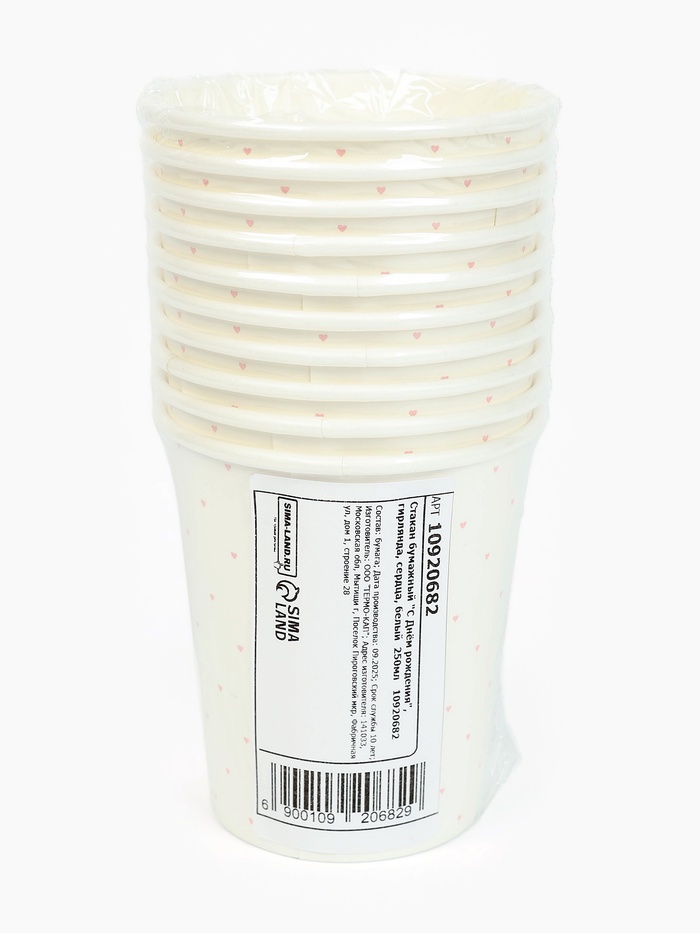 Стакан одноразовый бумажный «С Днём рождения», белый, 250 мл — Характеристики