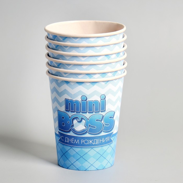Стакан одноразовый бумажный «С днём рождения, mini boss», набор 6 шт., 250 мл