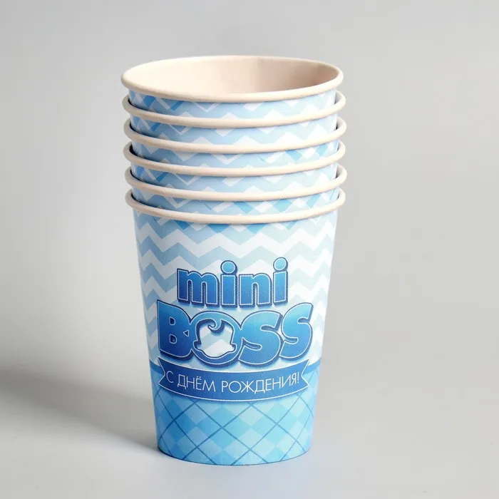Стакан одноразовый бумажный «С днём рождения, mini boss», набор 6 шт., 250 мл — Характеристики