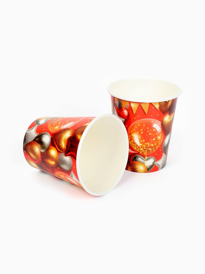 Стакан одноразовый бумажный «Воздушные шары», красный 250 мл