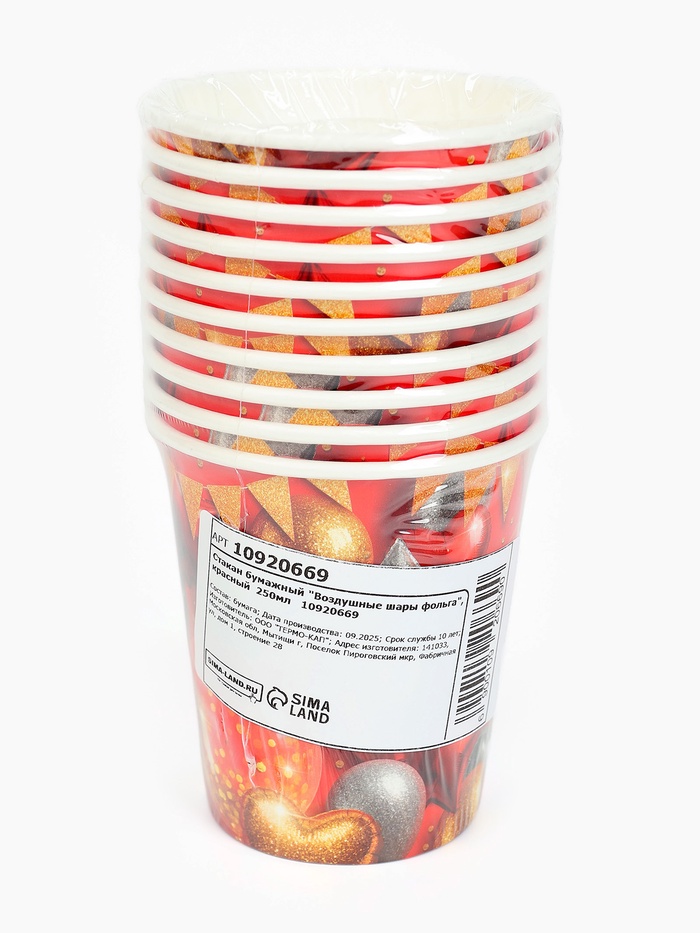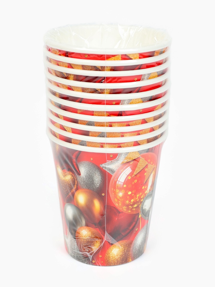 Стакан одноразовый бумажный «Воздушные шары», красный 250 мл — Характеристики