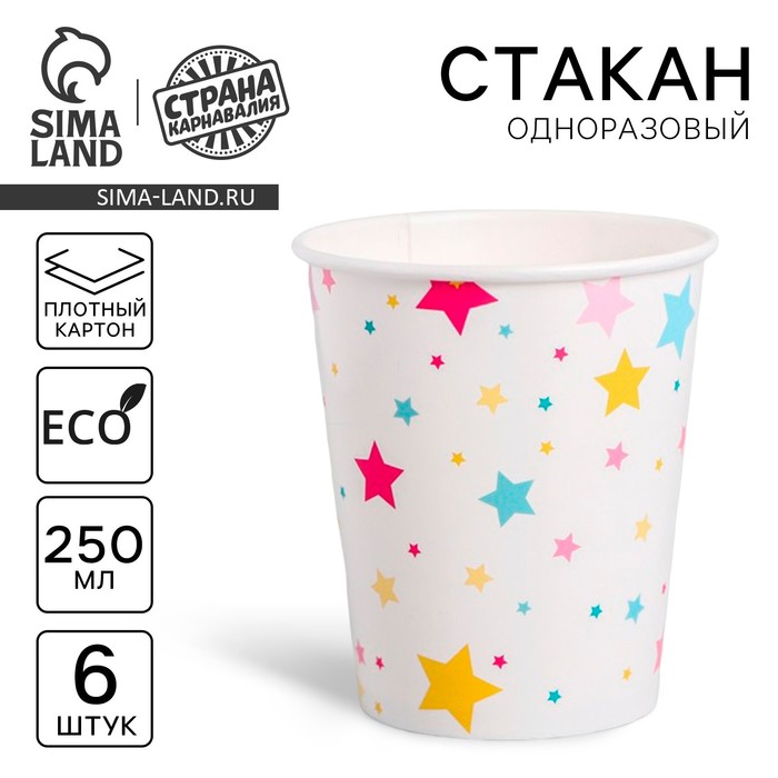 Стакан одноразовый бумажный «Звёзды», 250 мл, набор 6 шт.