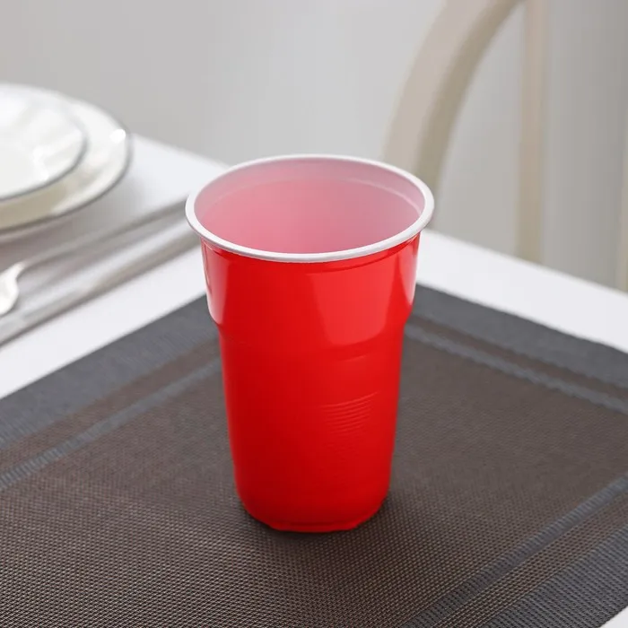 Большой одноразовый пластиковый стакан (500 мл, красно-белый)