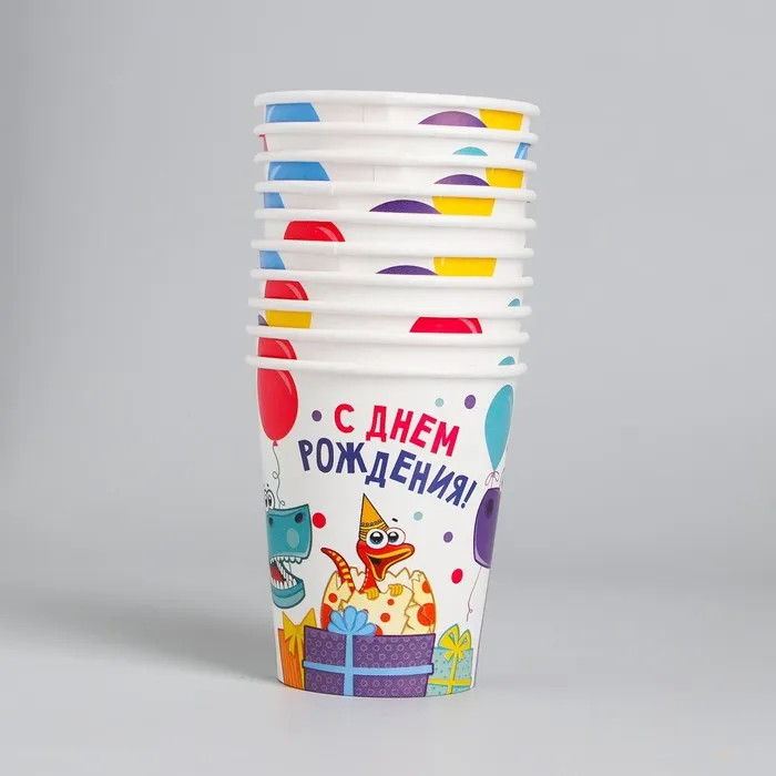 Стакан одноразовый бумажный «Динозаврики», 250 мл