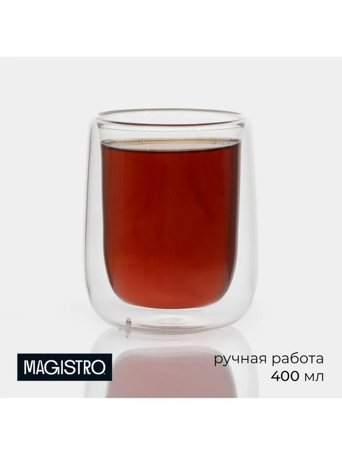 Стакан с двойными стенками Magistro «Поль», 400 мл, стекло, прозрачный — Характеристики