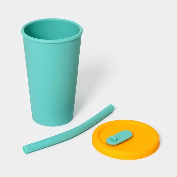 Стакан с крышкой и трубочкой, 350 мл, 9×9×13,5см, цвет зелёный — Характеристики