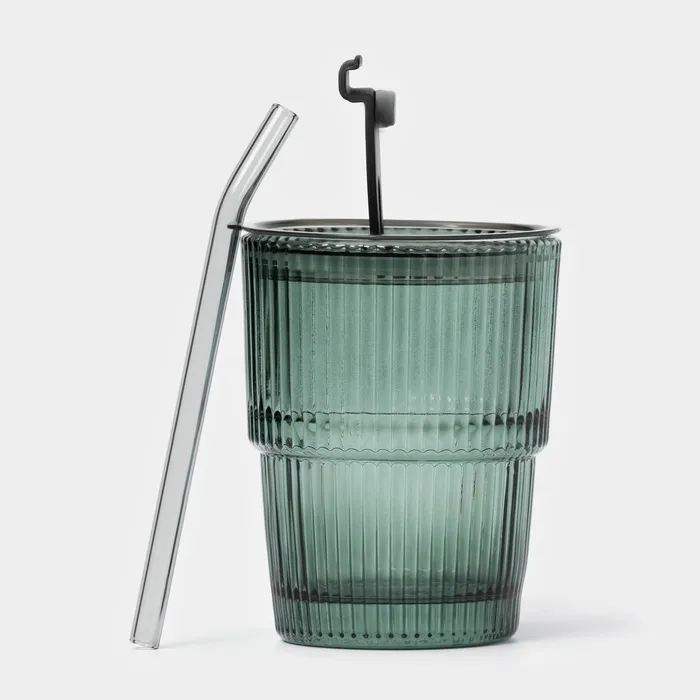 Стакан с крышкой и трубочкой «Вино Верде», 350 мл, стекло, зелёный — Характеристики