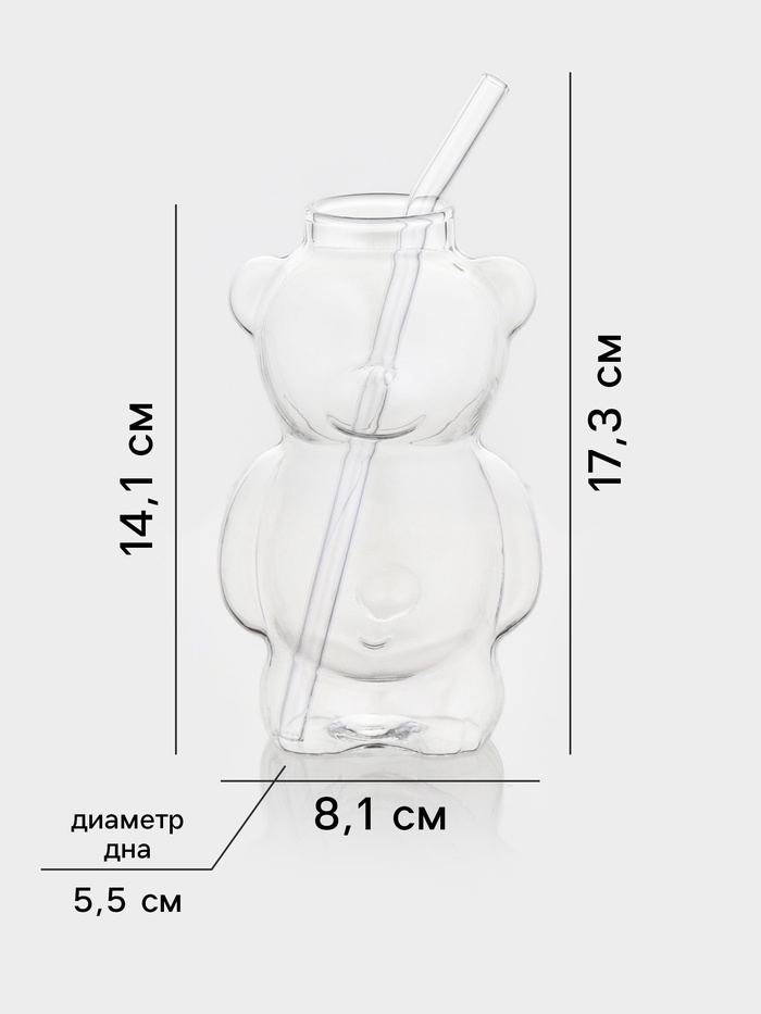 Стакан с трубочкой ToyBear, 340 мл, 9×14 см, стекло, прозрачный — Характеристики