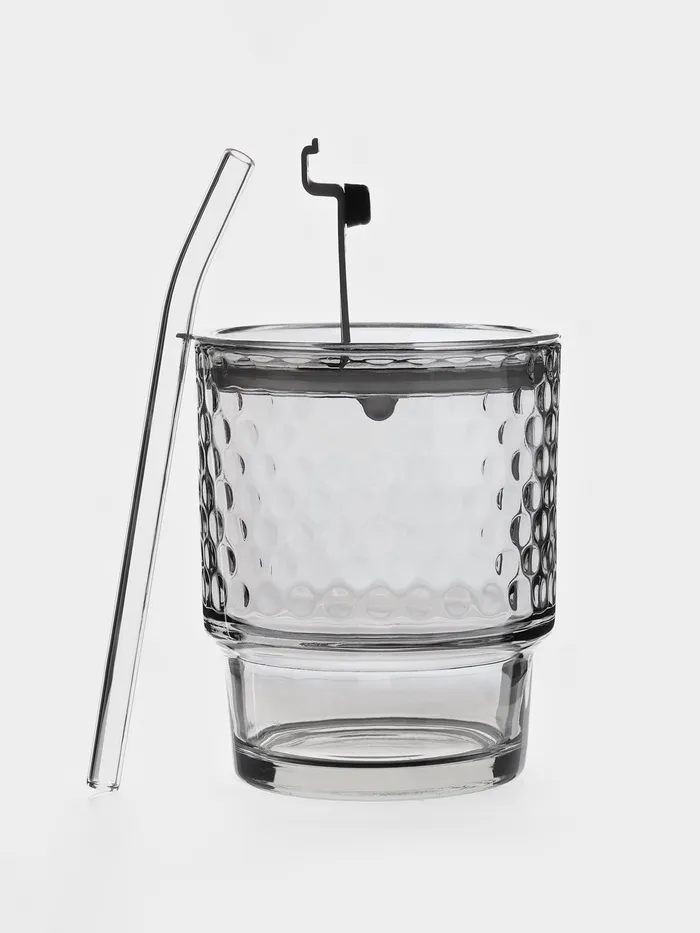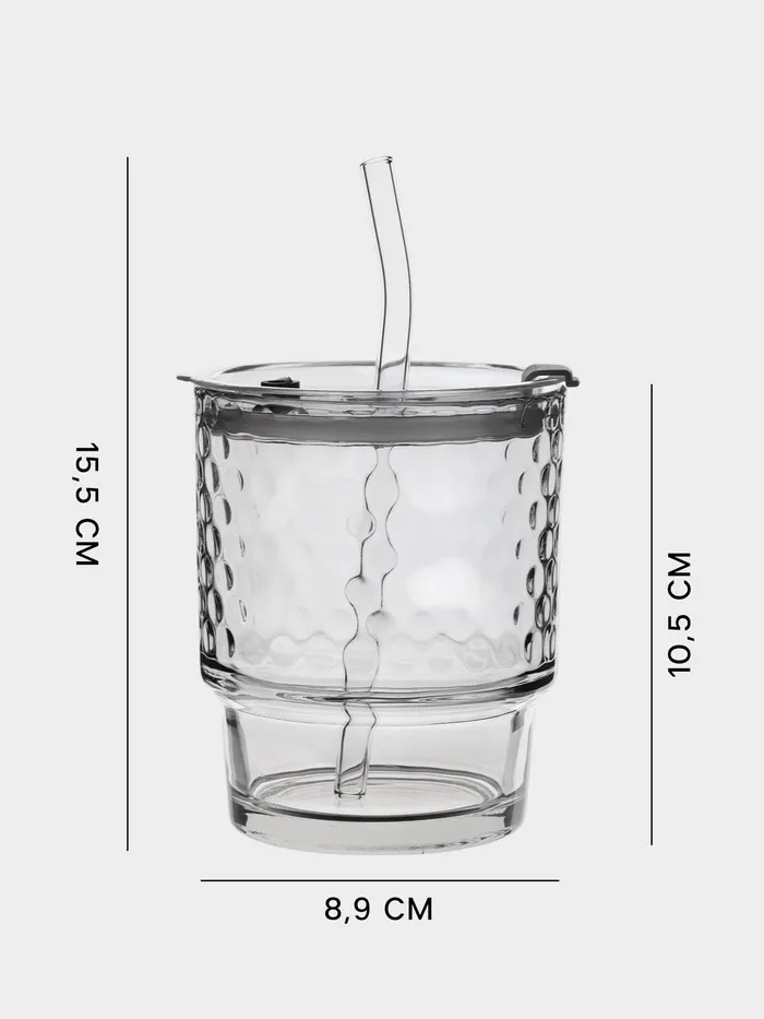 Объём 350 мл и размеры 9.5×9×12 см делают его идеальным выбором для освежающих напитков, утреннего кофе или сладких смузи. Крышка и трубочка делают его идеальным для путешествий и прогулок на свежем воздухе, позволяя наслаждаться любимым напитком в любом месте.