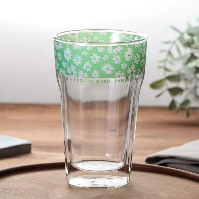 Стакан стеклянный с двойным дном «Просто живи, улыбайся», 450 мл — Характеристики