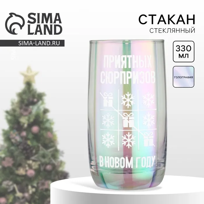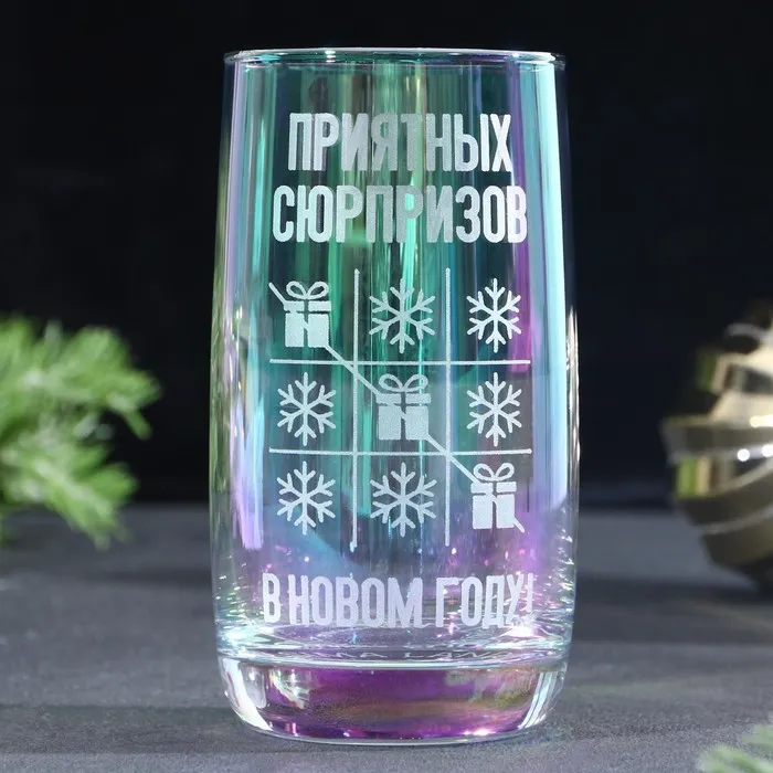 Стакан стеклянный с гравировкой «Приятных сюрпризов», 330 мл — Характеристики
