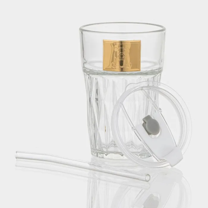 Стакан стеклянный с крышкой и трубочкой «Крона», 400 мл — Характеристики