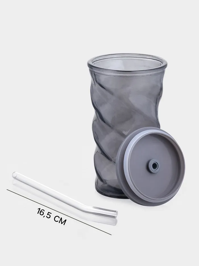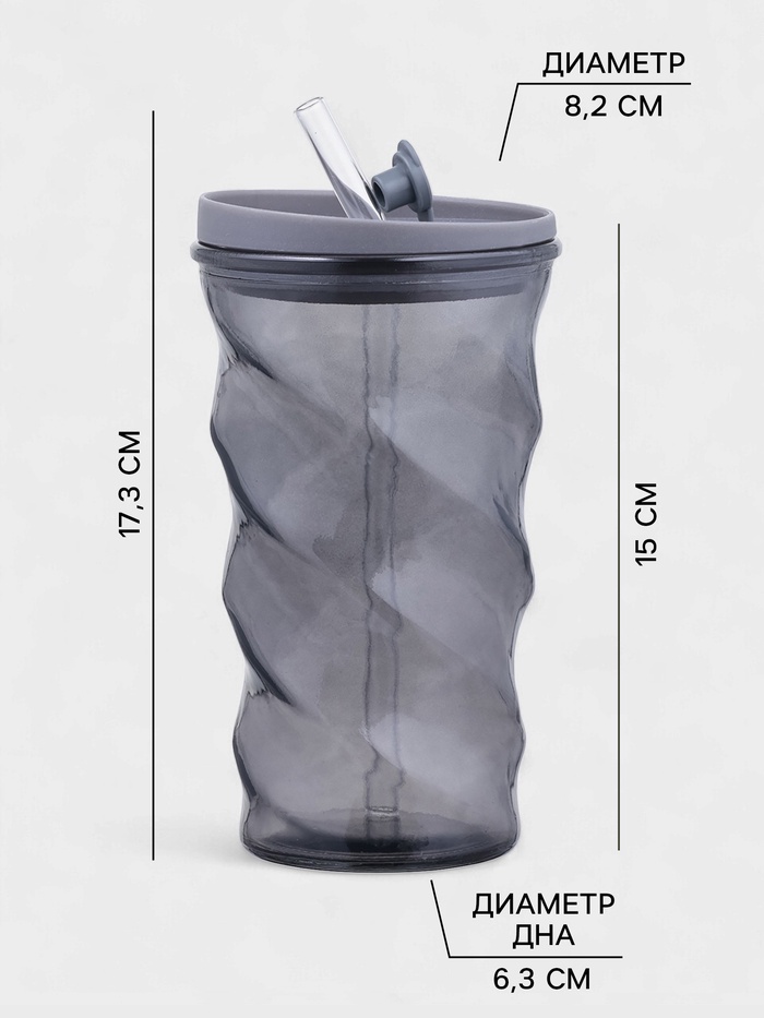 Стакан «Вихрь», 500 мл, 8×16 см, с трубочкой, силиконовая крышка, стекло, чёрный — Характеристики