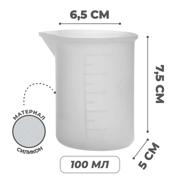 Мерный стаканчик сделан из высококачественного силикона. Подходит для использования в мыловарении, создании свечей, а также поделок из эпоксидной смолы.