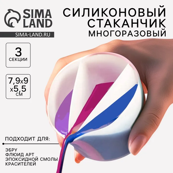 Силиконовый стаканчик с разделителями из высококачественного материала позволит создавать красивые эффекты при рисовании в технике флюид-арт.