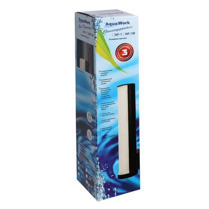 Стаканодержатель Aqua Work NF-1 — практичное решение для организации пространства на рабочем месте или в офисе. Этот аксессуар позволяет хранить до 100 стаканчиков, гарантируя их лёгкий доступ и порядок. Простая установка на шурупах обеспечивает надёжность крепления, а чёрный пластиковый корпус придаёт элегантность и гармонично вписывается в любой интерьер.