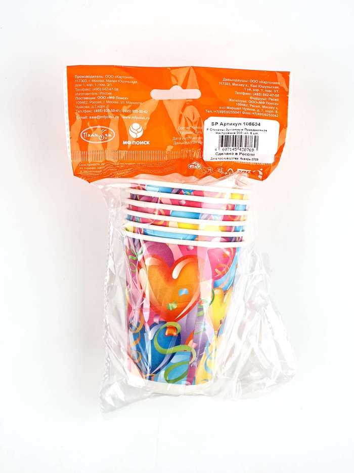 Стаканы бумажные «Праздничное настроение», 200 мл 6 шт. — Характеристики