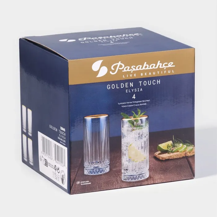 Стаканы Elysia, 365 мл, 4 шт., с золотой каймой, стекло, прозрачные — Характеристики