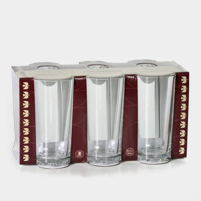 Стаканы «Глория», 280 мл, d=7 см, h=14 см, набор 6 шт., стекло, прозрачные — Характеристики