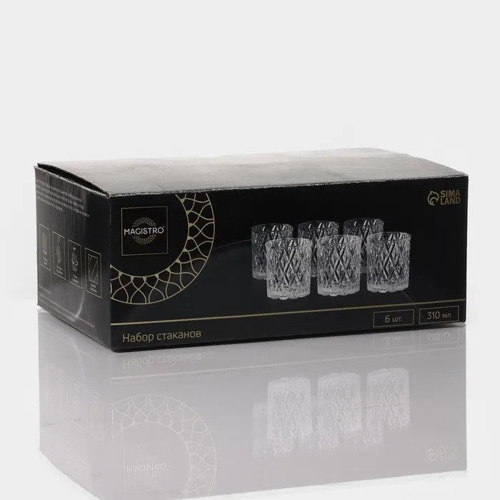 Стаканы Magistro «Богема. Ромбы», 310 мл, 8.3×7.7×9 см, набор 6 шт., стекло, прозрачные — Характеристики