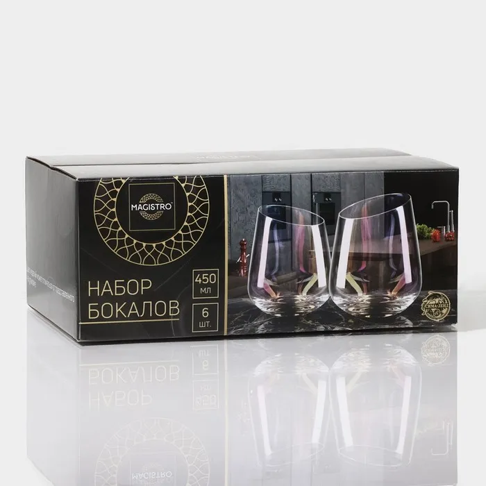 Стаканы Magistro «Иллюзия», 450 мл, 9.3×11.5 см, набор 6 шт., стекло, перламутровые — Характеристики