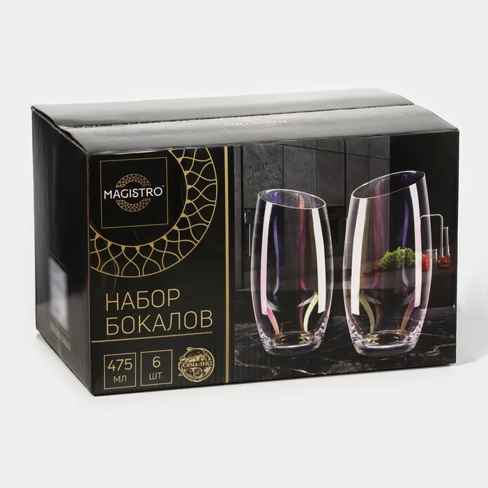 Набор высоких стаканов Magistro «Иллюзия» — это изысканное решение для тех, кто предпочитает освежающие напитки. Эти стаканы объёмом 450 мл изготовлены из качественного стекла и отличаются стильным дизайном, а также долговечностью. Размеры каждого стакана составляют 9,5×11,5 см, что обеспечивает удобство использования и позволяет насладиться каждым глотком вашего любимого напитка. Стаканы Magistro «Иллюзия» станут ярким элементом вашего стола и подчеркнут вашу индивидуальность и хороший вкус. Они идеально подойдут для дружеских встреч, семейных ужинов и праздников.