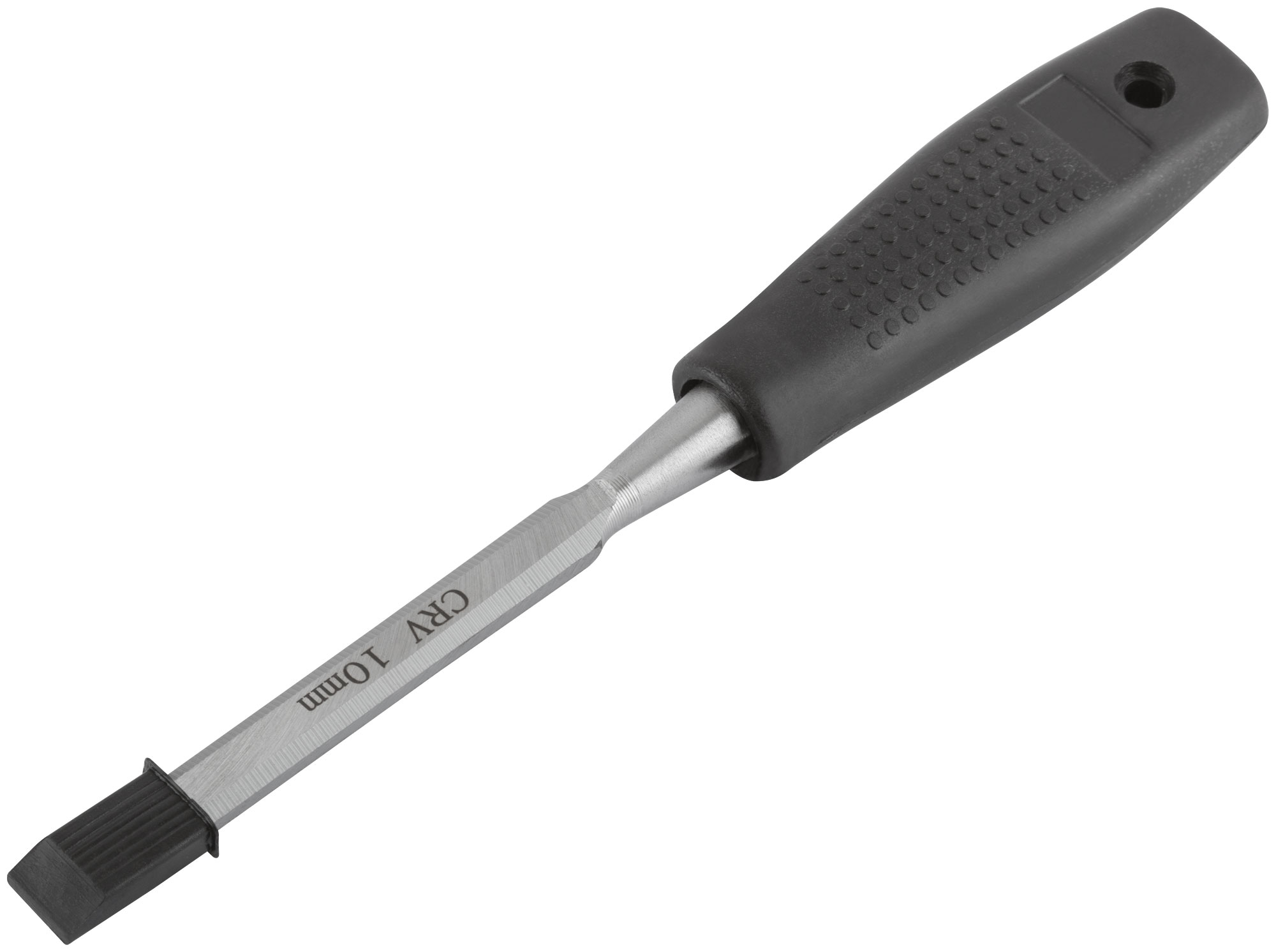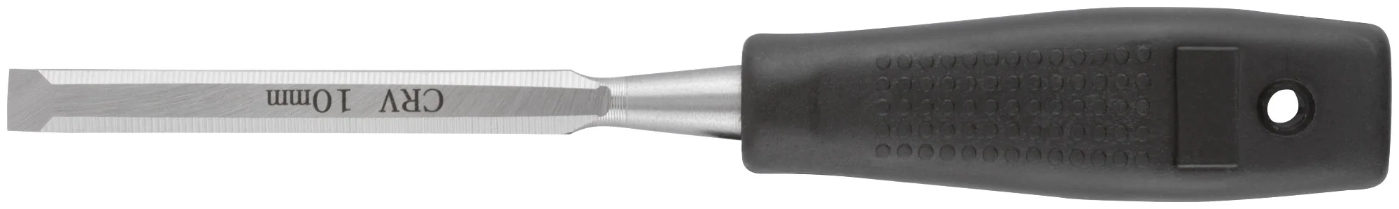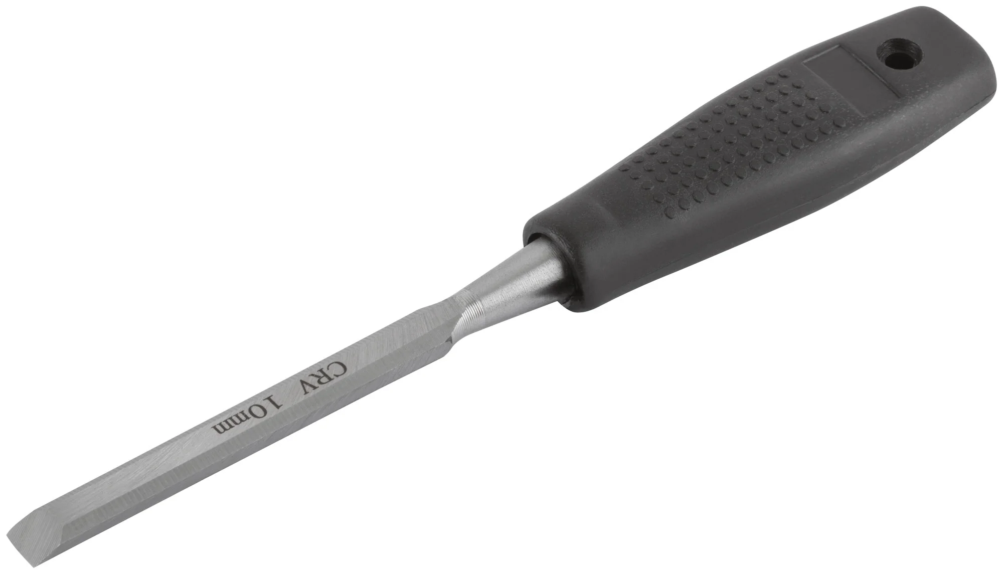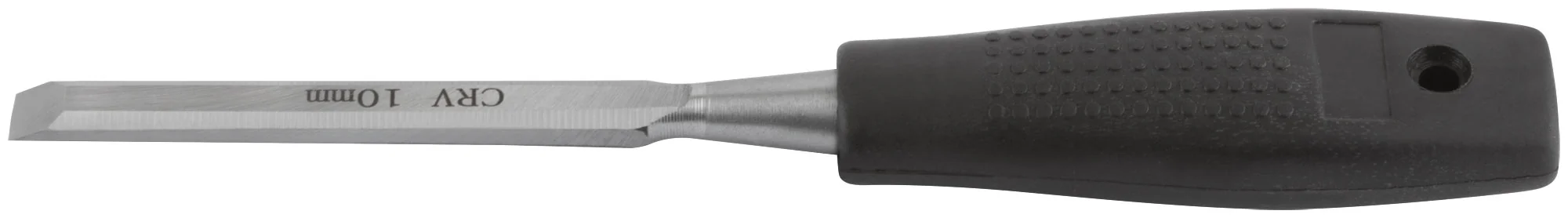 Стамеска изготовлена из высококачественной инструментальной стали CrV, что гарантирует долговечность и стойкость к износу. Пластиковая ручка обеспечивает надежный хват, что делает работу комфортной даже при длительном использовании.