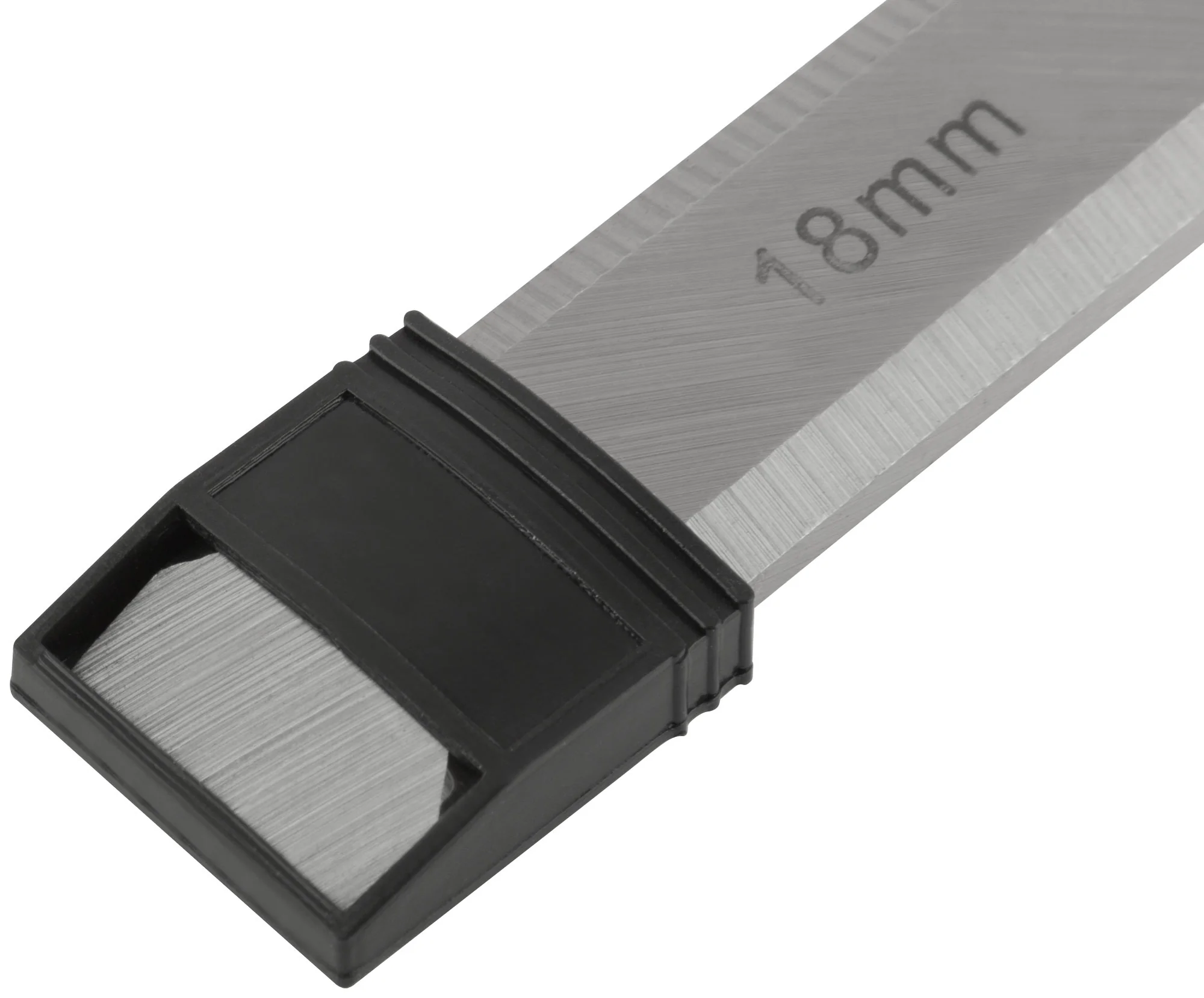 Эта стамеска CrV с шириной 18 мм и пластиковой ручкой станет вашим надежным помощником при точной обработке древесины и других материалов. Используйте её для создания деталей и вырезок с высокой точностью на всех этапах столярных и плотницких работ.