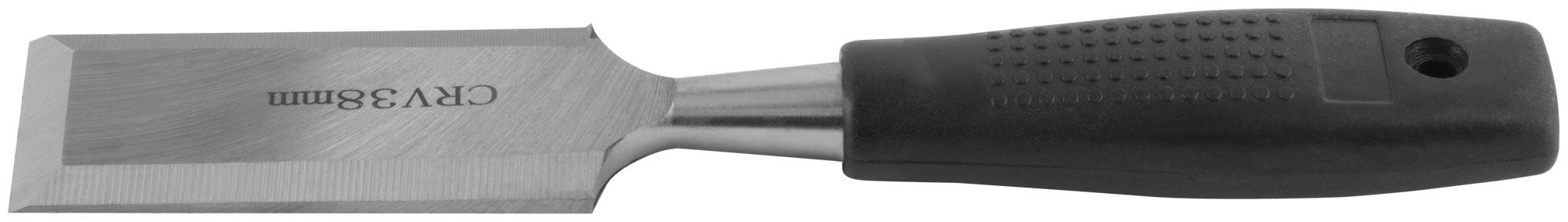 Стамеска изготовлена из инструментальной стали CrV, что обеспечивает ей долговечность и стойкость к износу. Пластиковая ручка удобна в использовании и позволяет надежно удерживать инструмент в руке даже при длительной работе.