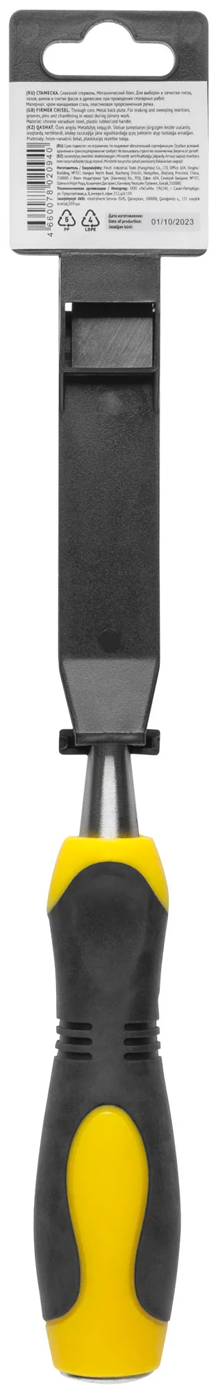 Сделанная из термообработанной инструментальной стали, стамеска обеспечивает долговечность и устойчивость к износу. Двухцветная прорезиненная ручка обеспечивает надежный захват, снижая риск выскальзывания инструмента в процессе работы. Встроенный металлический боек позволяет использовать дополнительный инструмент для более сильного удара.