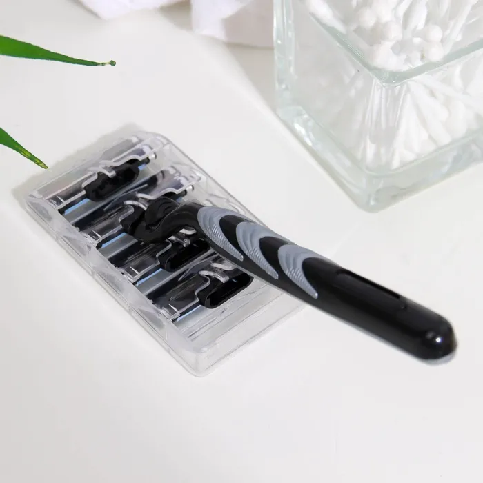 Бритвенный станок с тремя лезвиями и увлажняющей полоской, в наборе 12 сменных кассеты лезвий.