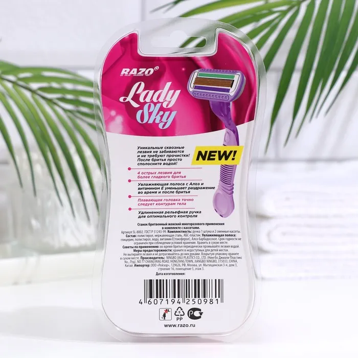 Станок бритвенный женский Razo LadySky, 4 лезвия + 2 сменные кассеты — Характеристики